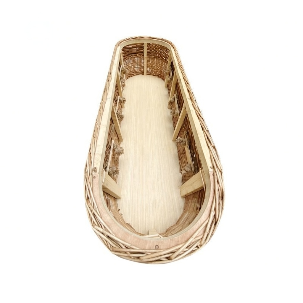 Wholesale EU natural wicker coffin, eco handwoven willow coffin for European natural burial. Bulk customizable sustainable coffins with natural wicker/willow—premium craft for EU cross-border funeral needs.
