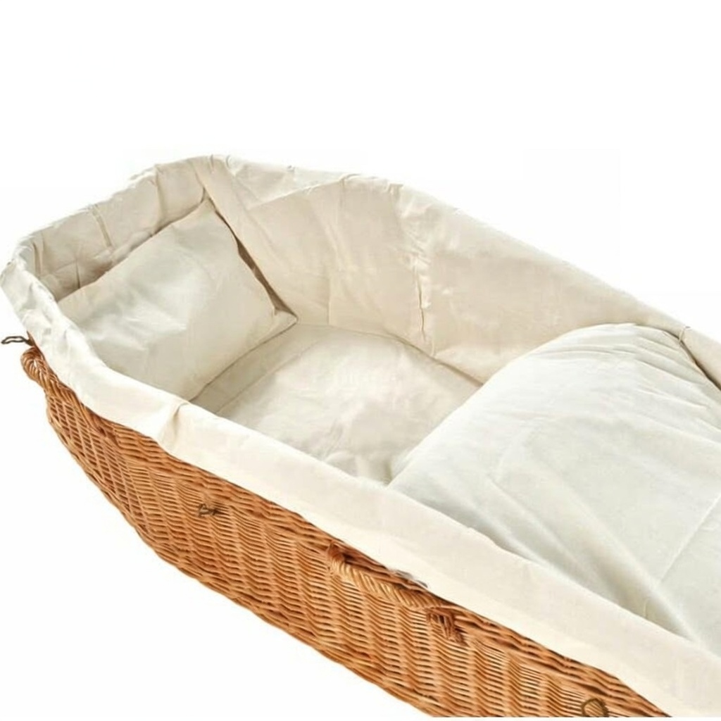 Bulk handwoven natural wicker coffin & casket, sustainable eco willow for global natural burial. Wholesale customizable eco burial products with authentic handwoven craft for worldwide funeral markets.